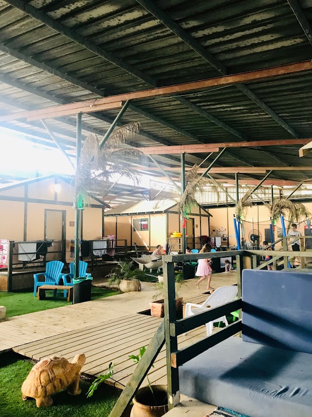 המתחם כולל 10 בקתות ממוזגות, יש מצעים בחדרים ונותר להביא מגבות מהבית, ולהתארגן על אוכל. המטבח והמקלחות/שירותים משותפים למתחם. בין הבקתות יש המון פינות זולה, דק מעץ עם מזרנים לישיבה, ערסלים, טרמפולינות לילדים, ומה לא..