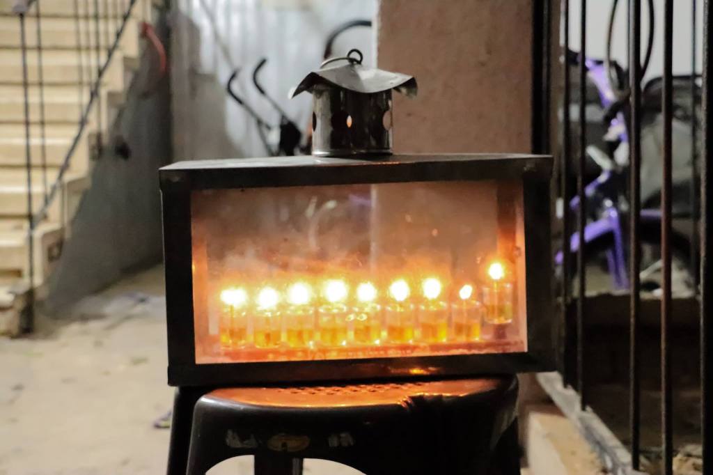בנוסף, אב המשפחה הזמין את כל אחד מהילדים להדליק נר משלו באחת החנוכיות. נפרדנו מהם בחיבוקים וברכות חג והמשכנו לשוטט.