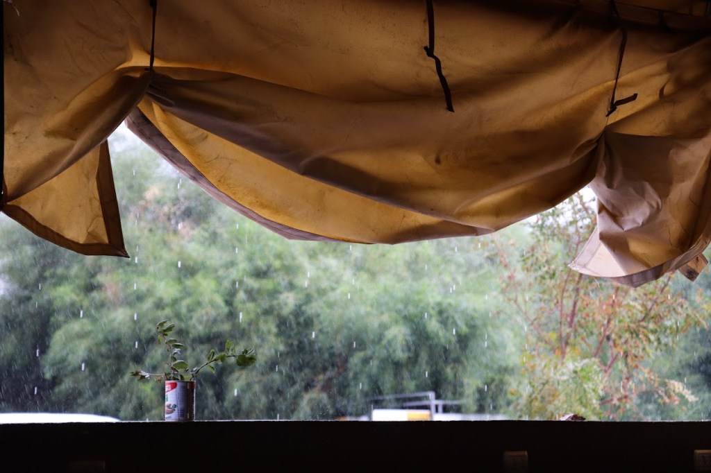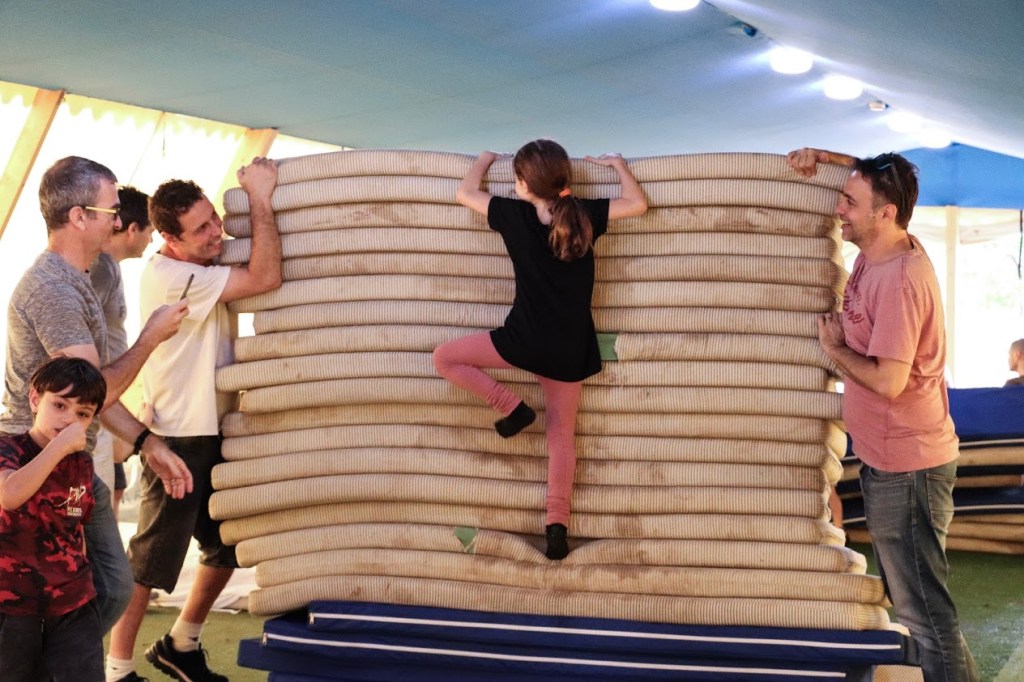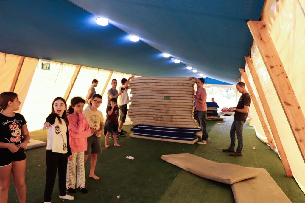 איפשהו ב02:00 לפנות בוקר החל לרדת גשם. אבל בתוך האוהלים היה לנו חמים ונעים. הגשם ליווה אותנו גם בבוקר, ובמהלך השעה שלאחר ארוחת הבוקר הילדים מצאו להם תעסוקה בצורת נינג'ה ישראל באחד האוהלים. חלק מהילדים (למשל הבת שלי וחברות שלה) מצאו תעסוקה בריקודים בגשם 😅