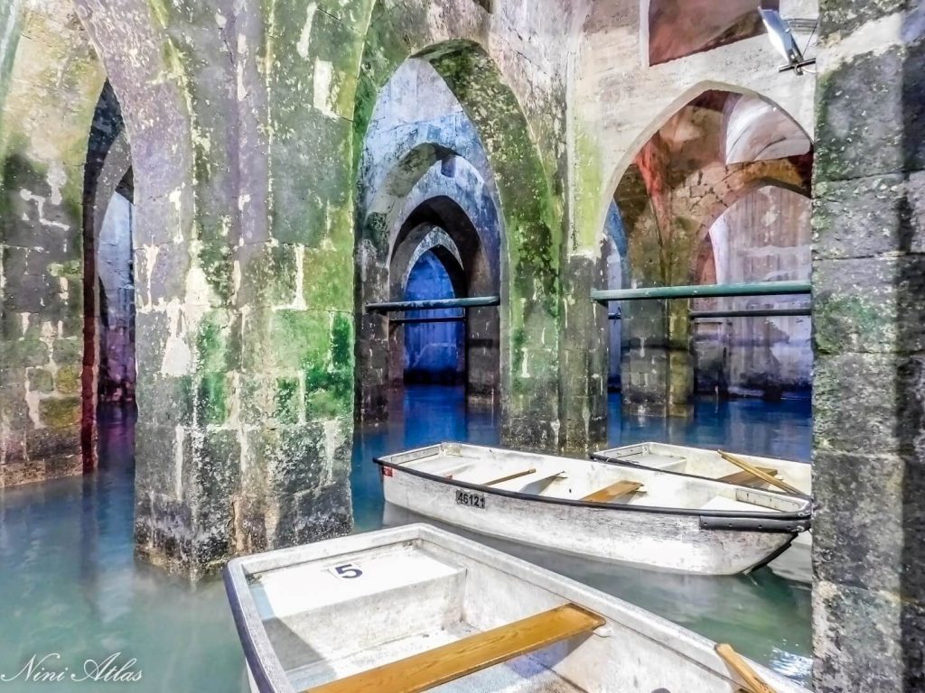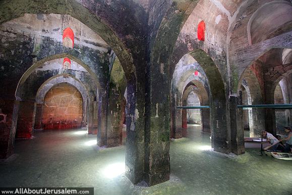 מדרגות אחדות יורדות אל הבריכה, ובה שלושה טורי עמודים בנויים אבן, ובכל טור חמישה עמודים הנושאים את הקשתות המקומרות שעליהן בנויה התקרה. בתקרה קרועות שורות של אשנבים מרובעים, שדרכם כנראה נשאבו מים בעזרת דליים וחבלים בדורות הקודמים. הבריכה היא כמעט מרובעת. אורך צלעה הארוכה מגיע ל-21.17 מ', והצלע האחרת – 19.82 מ'. בימי החורף עולה הבריכה על גדותיהָ, והמים נשאבים ממנה.