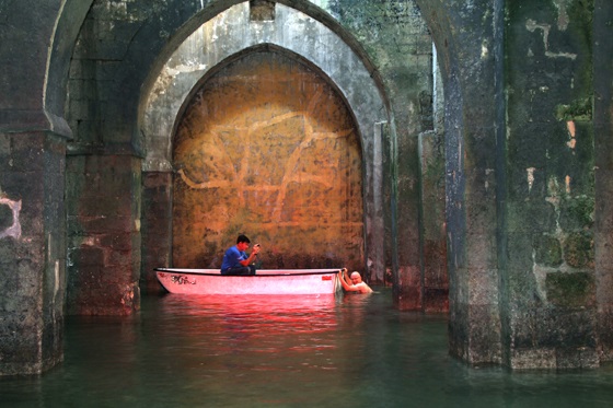 ראשית, המערה שימשה כאחד מאתרי הצילום של הסרט "חסמבה ונערי ההפקר". בסרט נראתה חבורת הסוד בורחת על גבי סירות אל תוך חלל גדול וקסום, הוא בריכת הקשתות.