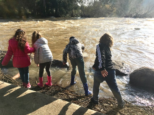 משם ירדנו חזרה דרך גשר בנות יעקב, שוב צפינו בזרימה, הילדים פרקו עוד קצת אנרגיה ועלינו חזרה לרכבים