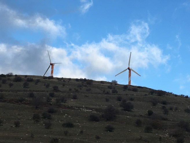 הגענו עד טורבינות הכח, הסברנו לילדים בדרך מה משמעותן אבל לצערנו לא יכלנו לעלות ממש עד למעלה עם הרכבים, הדרך היתה בלתי עבירה לרכב פרטי בגלל הגשמים והבוץ