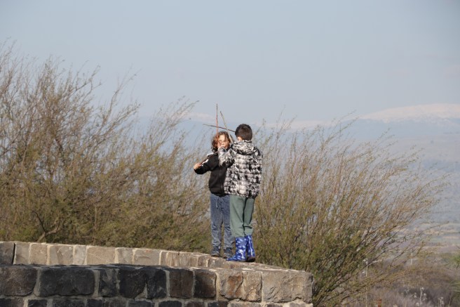 בדרך חזור עצרנו בתצפית יפהפיה לחרמון שבה עמדו לא מעט חיילי גבעתי עם חרמוניות, ניכר היה שהם בהפוגה קצרה, הילדים פטפטו עם החיילים, הצטלמו איתם וכמובן השאירו להם ממיטב החטיפים והשתיה שהבאנו, לפנק אותם.